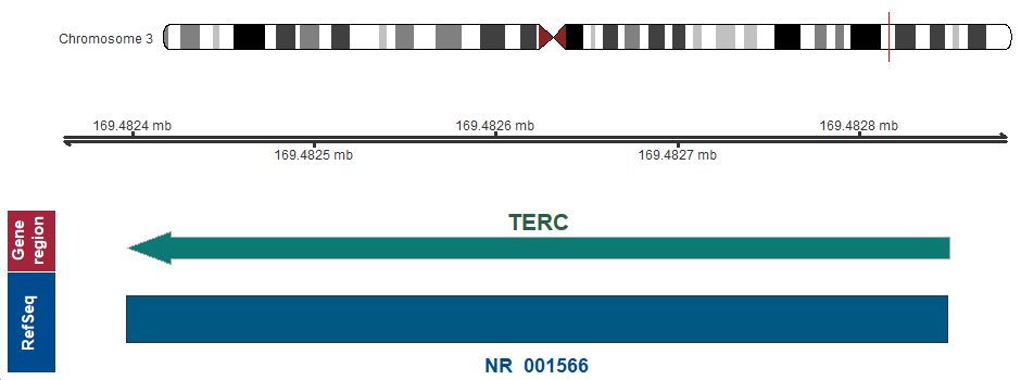 TERCはテロメラーゼのRNAサブユニットであり、テロメア反復配列を付加するする際のテンプレートとして機能し、テロメアの長さとゲノムの安定性の維持に働く。TERCの遺伝子増幅や過剰発現は、肺扁平上皮癌、子宮頸癌、食道扁平上皮癌において認められる。